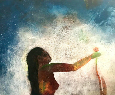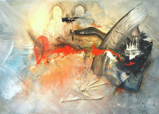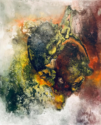 Wieder hat ES gemalt. Bei diesen Bildern ist es zum Teil dem Zufall geschuldet, dass Gesichter und Figuren entstehen und zum Teil sehr bewusst herbeigeführte Szenarien. Natürlich muss man