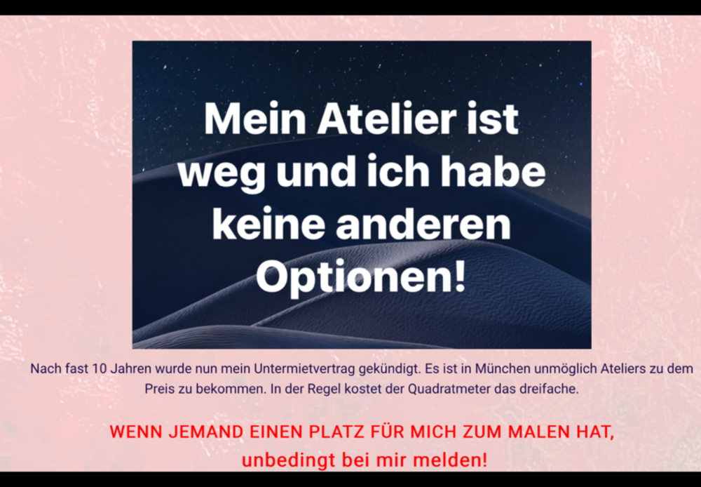 In meinem Atelier gebe ich Einzelunterricht. Das Atelier liegt direkt an der Theriesenwiese in München und ist leicht mit Öffentlichen Verkehrsmitteln erreichbar.